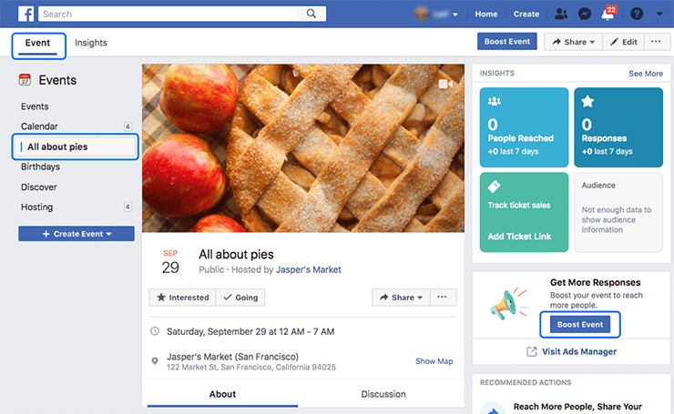 After you create an event from your Page, you can boost it to help increase awareness, encourage RSVPs and drive ticket sales.