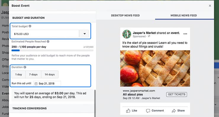 Some businesses, like Jasper’s Market, may want to focus on increasing ticket sales, while others may want to drive awareness of their event.
