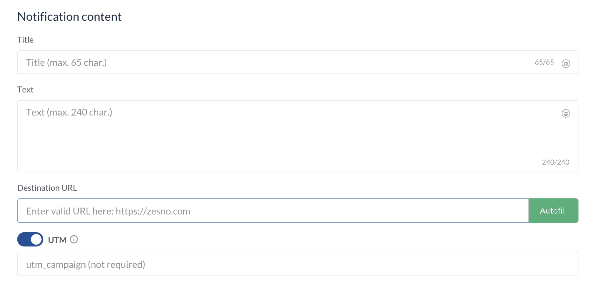 Write a crisp title and copy within the recommended character limit, add images or emojis to convey more with fewer words, provide the correct URL and CTA, and hit send. Your first push notification will be on its way to your subscribers.