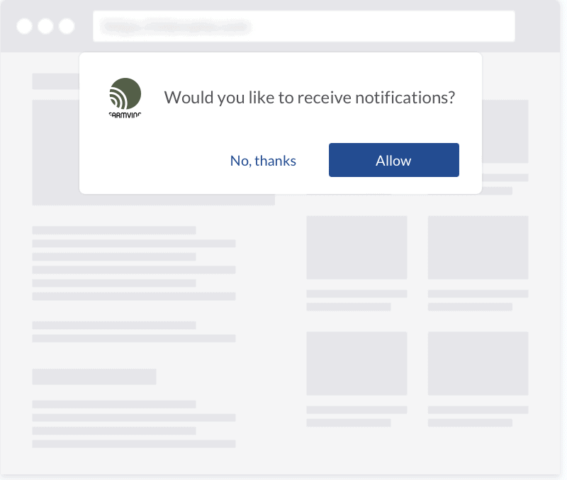 Once you set up push notifications on your website, your visitors will begin seeing a small opt-in box on their browsers. This box asks them if they want to receive notifications from your website. As soon as they give their permission, they’re added as subscribers to your subscriber base, and you can start sending notifications to engage and target them to return to your website for more offers and actions.