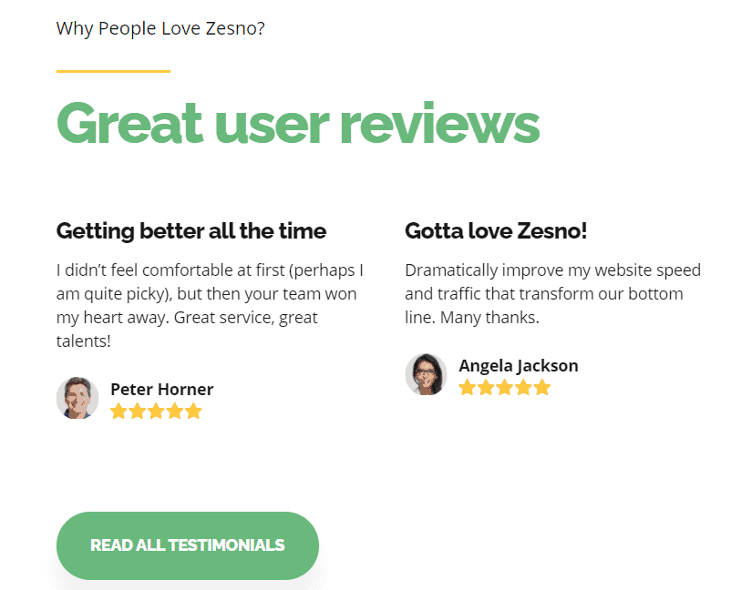 In addition to the select few testimonials that you’ll place on your home page, also create a dedicated testimonial page. Link to this page on your main menu so that it’s easy to find. If possible, add actual photos of your customers to give a greater sense of credibility to your reviews.